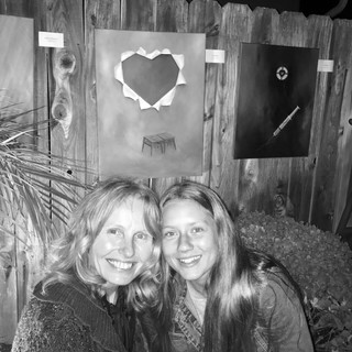Five artists from four countries in one backyard in a show aptly named "Between Fences"; a designated fenced art space in between two properties. And so the Poway backyard was livened up by eclectic art that had one in common: the artists are extending their revealing souls into tangible sincere meaningful pieces so we can be inspired, we can wonder and seek our own explanation.